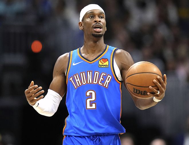 新賽季2場比賽亞歷山大雖然三分失準,場均投中1.5個三分,三分命中率只有18.8%,但憑借上籃、中投、罰球,他砍下了炸裂數據,他場均砍下45分6.5板5助2斷1.5帽,命中率47.4%,數據太炸裂,他的場均罰球數高達20次,遙遙領先其他人,他的造殺傷能力太強了。